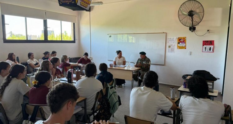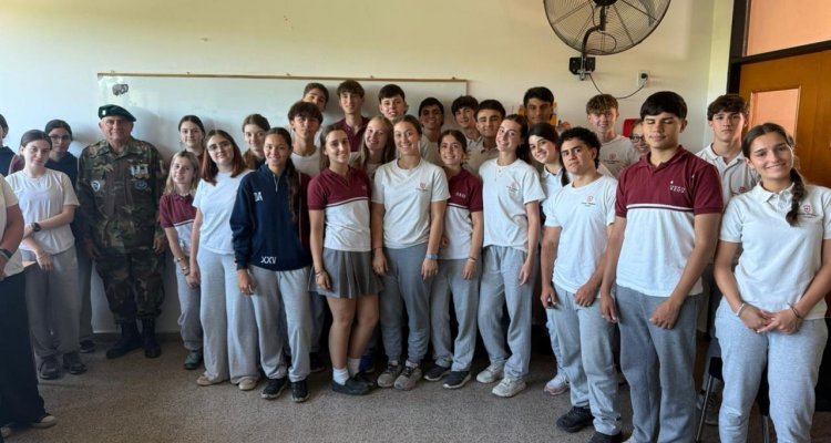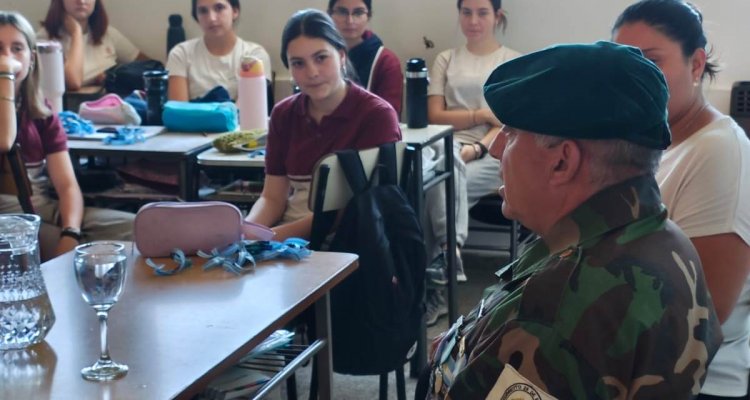 Los estudiantes de Sexto año participaron de una charla brindada por el Veterano de Guerra de Malvinas, Hugo Bertone, en el marco del proyecto para La Dante Emprende: "Malvinas, una historia, muchas voces".
