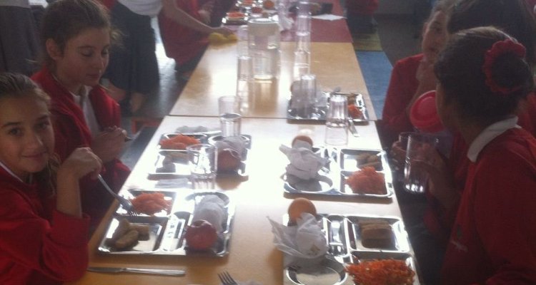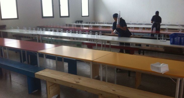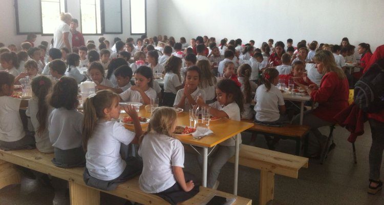El servicio de comedor comienza con el lavado de manos de los alumnos y la posterior ubicación en las mesas.